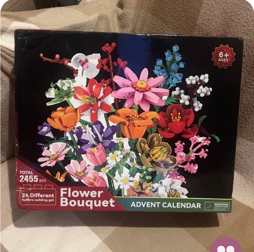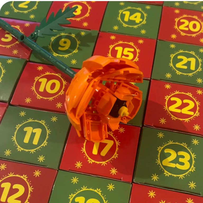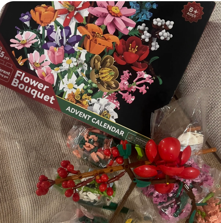 The calendar includes 24 mini builds that combine into one stunning floral bouquet. Every day adds a piece of beauty until you’ve built a full display.